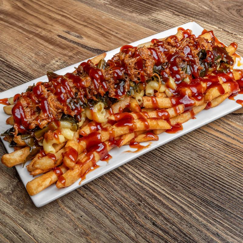 mac and cheese, collards, pulled pork, house-made bourbon bbq.