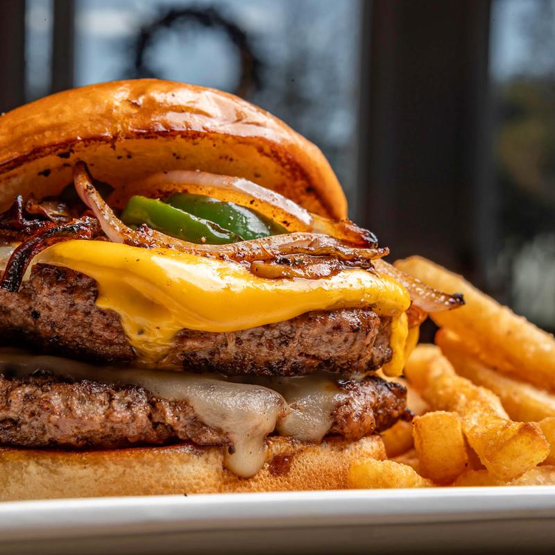 single $15.00 | double $18.00 • blackened beef patty, beef, american, provolone, swiss, sautéed onions, mushrooms, jalapeños, brioche bun.