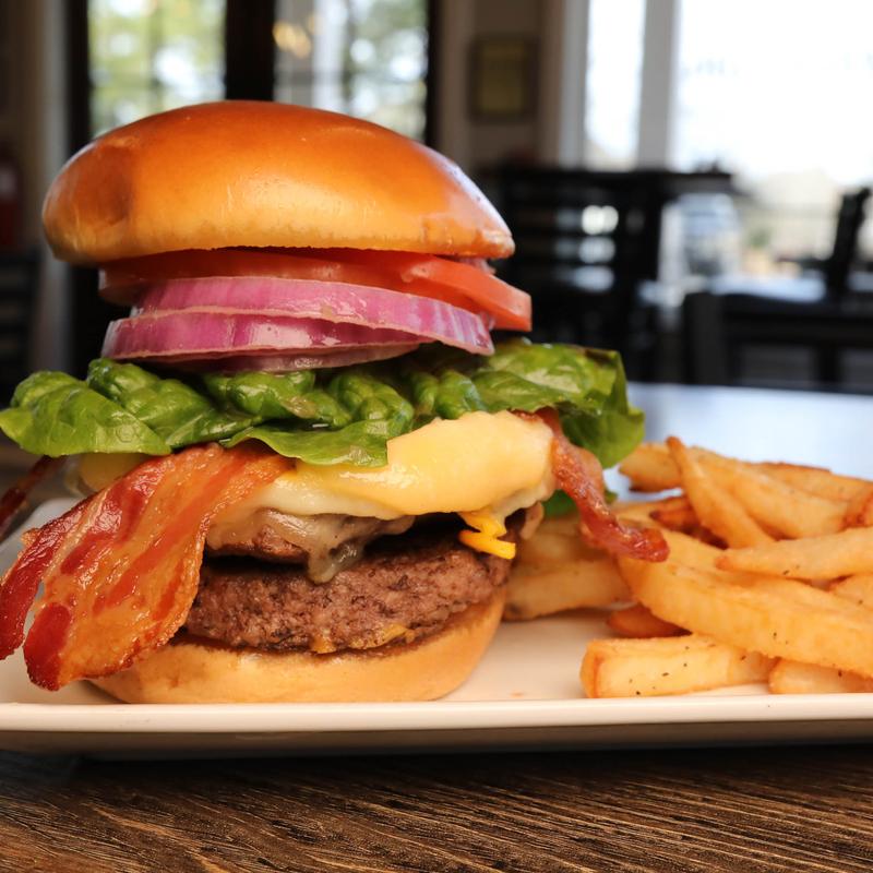 single $13.00 | double $16.00 • grilled beef patty, bacon, provolone, american, swiss, lettuce, tomato, onions, brioche bun