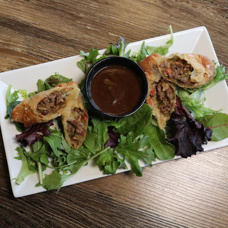shaved steak, onions, green peppers, cheese, fried. served with warm brown gravy.
