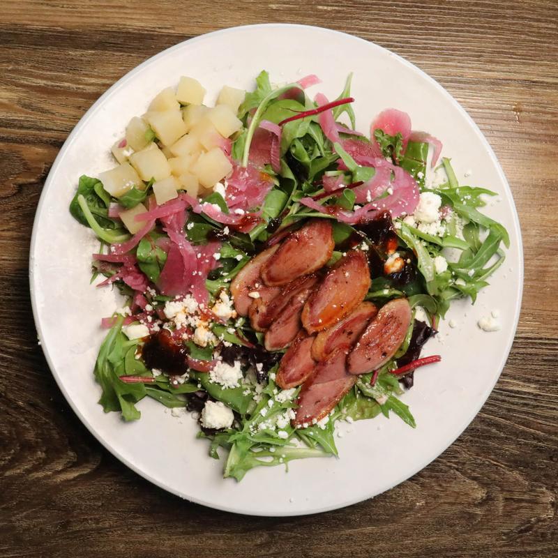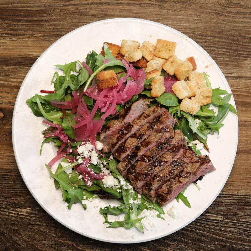 grilled, cooked medium, spring mix, pickled red onion, goat cheese, croutons, tossed in balsamic dressing.