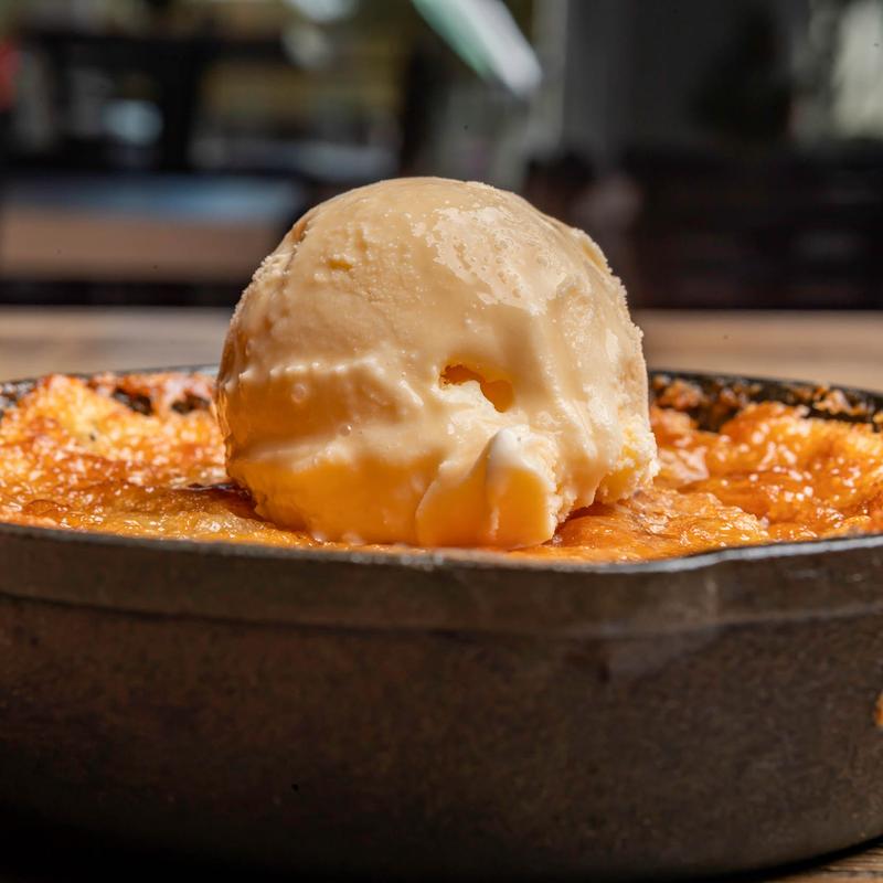 fruit soaked in bourbon, topped with vanilla or bourbon ice cream, and bourbon caramel sauce.