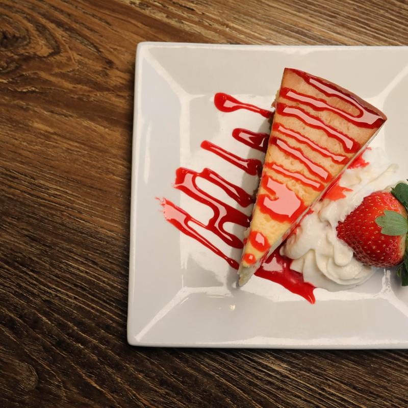 new york style, strawberry, chocolate, or luxardo cherry drizzle.
