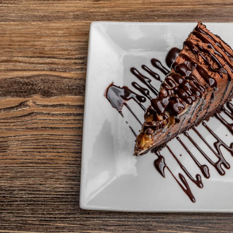 rich chocolate cream, nuts, chocolate chips, turtle cheesecake, and golden caramel center.