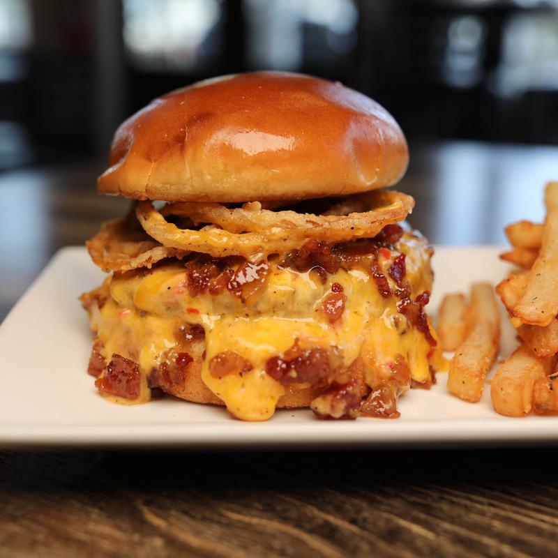 single $16.00 | double $19.00 • grilled beef patty, onions, wicked pimento cheese, bourbon and bacon jam, brioche bun.