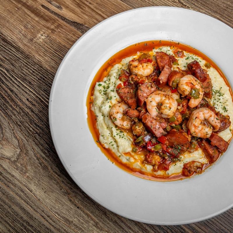 sautéed new orleans-style shrimp, crawfish, andouille sausage, onions, peppers, cheese grits, au jus.