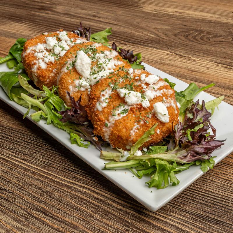 green tomatoes, cajun seasoning, panko, fried, goat cheese, parsley, ranch.